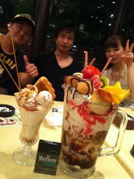 最初のうちは缶コーヒーなどの可愛いものだったのですが、今回はなんとジャンボパフェ∑( ̄□ ̄;